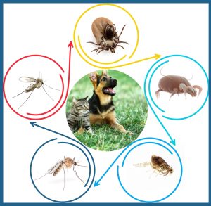 Además de producir enfermedad/molestias con su sola presencia, estos parásitos, a su vez suelen actuar como parte del ciclo de transmisión de otros parásitos como la Ehrlichia o Anaplasma (participan las garrapatas), parásitos intestinales como el Dypilidium (intervienen las pulgas), la leishmania (interviene el flebótomo) o mosquitos (del género Culex y Aedes) como transmisores del gusano del corazón.