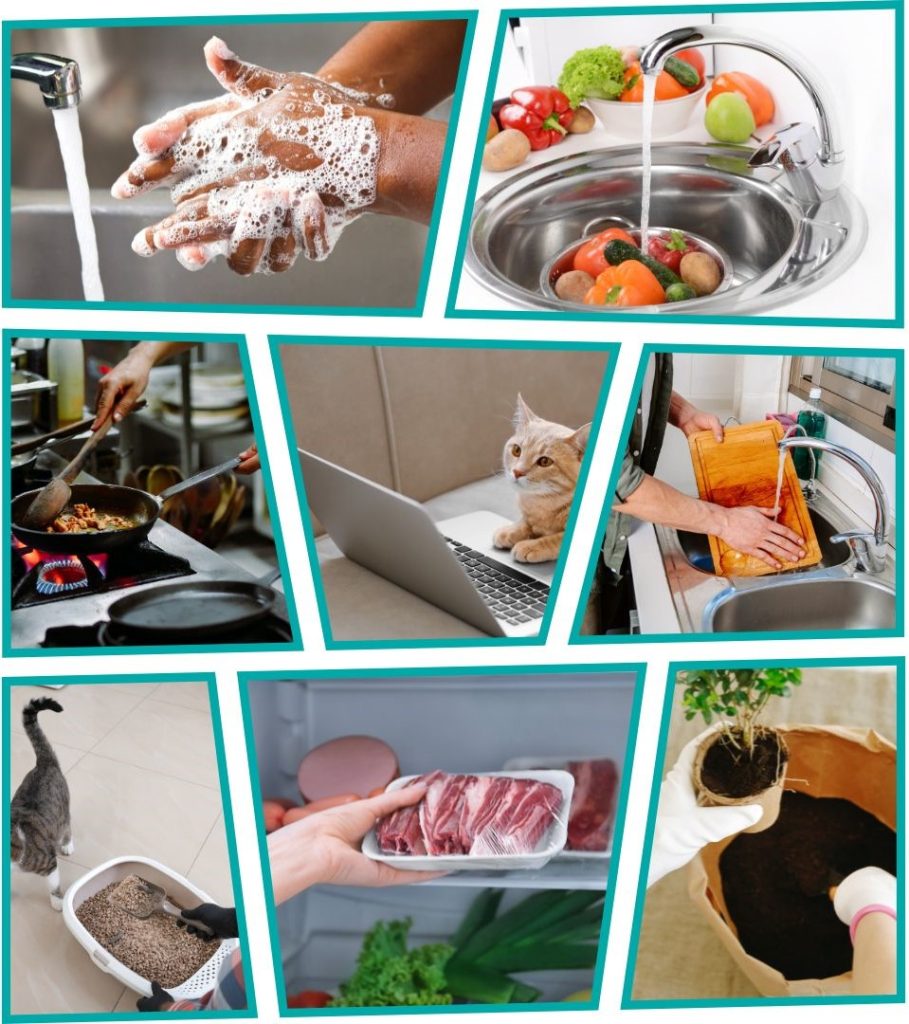 - Contaminación cruzada (si no se lavan utensilios de cocina o las manos entre un alimento y otro al cocinarlos)